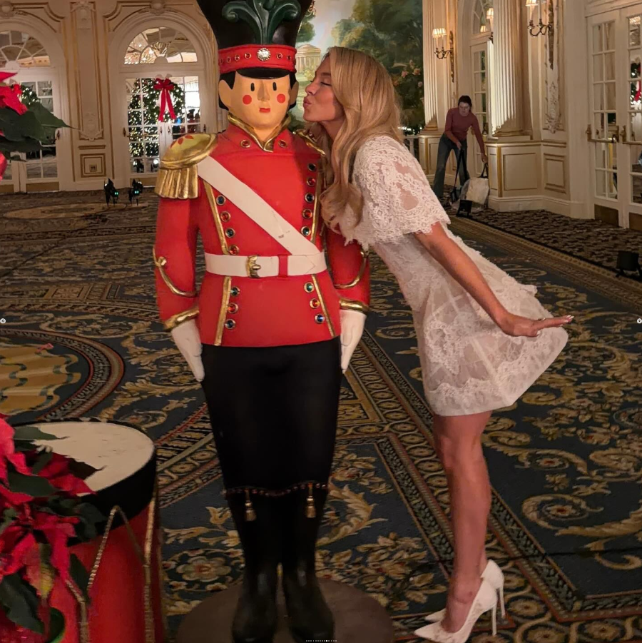 وفي صور أخرى، قبّلت سويني دمية جندي الـ”نوتكراكر” على خدها وهي ترتدي فستانا أبيض من الدانتيل، وخضعت لتصفيف شعر ومكياج، وضحكت مع جيمي فالون خلف كواليس برنامج “The Tonight Show”، كما قامت برسم بورتريهات لنفسها مع نجمة فيلم “Mean Girls”.