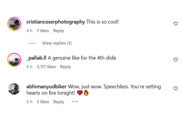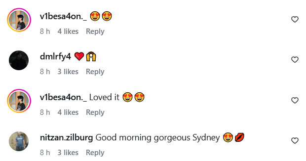 وتوجه المعجبون إلى خانة التعليقات للتعبير عن إعجابهم بلحظات الكواليس للنجمة الفاتنة، كتب أحد المتابعين: “إعجاب حقيقي من أجل الصورة الرابعة” في إشارة إلى صورة سويني بدون الجزء العلوي من الثياب، بينما كتب آخر: “امراة جميلة”، وعلق أحدهم: “لا أستطيع وصفك ستشعلين القلوب الليلة!”. وحظيت الصورة خلال 8 ساعات، على أكثر من نصف مليون إعجاب.