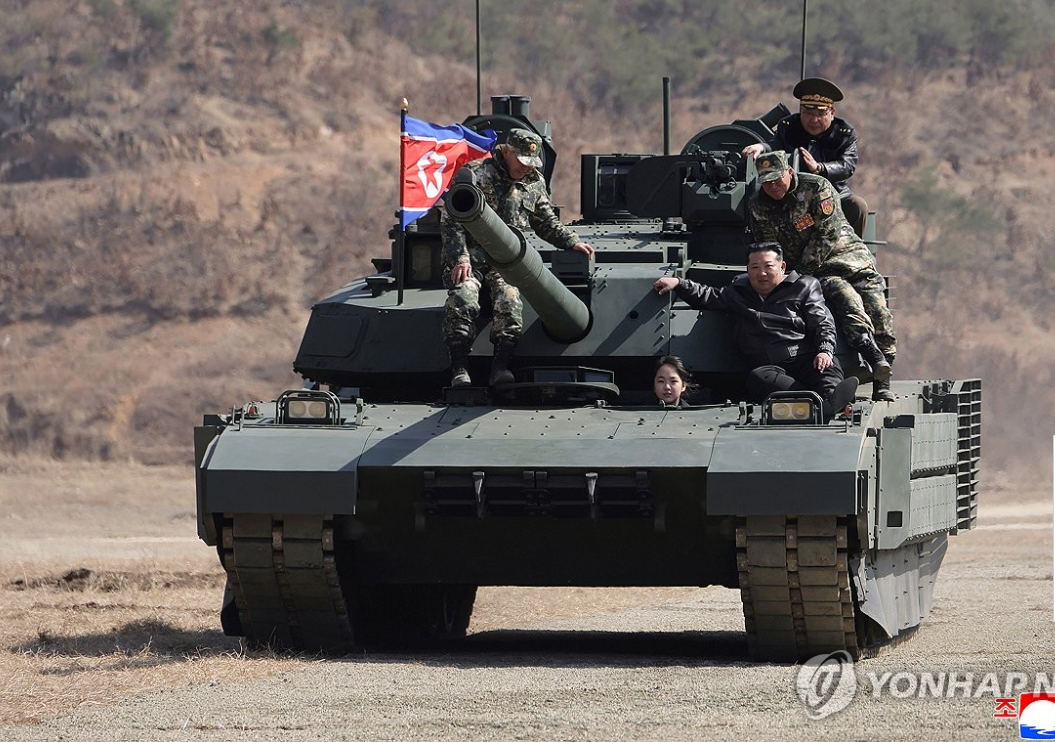 وأظهرت صور رسمية ابنة كيم، كيم جو أيه، وهي تستقل الدبابة مع والدها في أحدث ظهور لها ضمن فعالية عسكرية بارزة، في إشارة إضافية إلى دورها الرمزي المتصاعد في مشهد الخلافة.