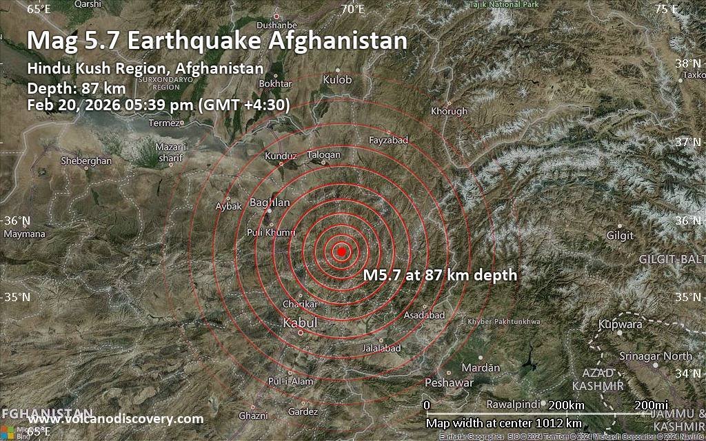 وأشار المصدر ذاته إلى أن مركز الزلزال كان عند خط عرض 35.48 درجة شمالا وخط طول 69.86 درجة شرقا.